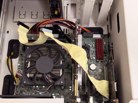 CPU(Xeon W-1290PのES)も取り付けられた状態で編集部よりきたのでそのまま使うことに。ただし背面パネルのカバーがなかった(編集部によれば誤って処分したかもとのこと)。CPUクーラーは手持ちでお気に入りの「Samuel 17」を使用した。LGA1700世代のCPUには正式対応しないが、今回のマザーにも使え性能も十分だった。