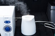 そう、家庭用のコンセントだって1つあたり最大1,500Wなのだ。ということは大きな電力を使いそうな調理家電であっても、その全ては1,500W内に収まるように設計されている。ならばアウトランダーPHEVに接続して使ってもまったく問題無い「はず」なのだ。というわけでシチュエーション的には限りなくヤラセに近い訳だが、わざわざ電子レンジまで持ち出してみた。