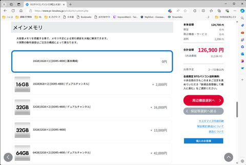 OSや一部パーツをカスタマイズしての注文にも対応している。Windows 11 Proに変更を始め、Microsoft OfficeをHome & BusinessやProfessionalにアップグレード、CPUグリスの変更、メモリの増設(最大64GB)、ストレージの容量アップなどが可能だ。