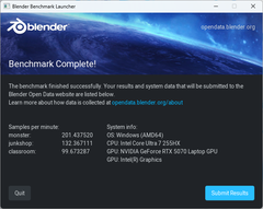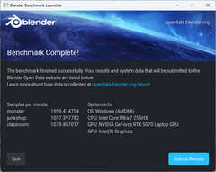 Cinebench 2024は3DCGレンダリングを10分間連続実行するため、CPUが十分に温まった状態でのCPU演算性能を確認できる。マルチスレッドテストのCPU Multi Coreは1,660pt、シングルスレッドテストのCPU Single Coreは130ptだった。マルチスレッド性能は20コア/20スレッドのCore Ultra 7が効いている印象。シングルスレッド性能も最大5.2GHzのブーストの効果といった印象だ。3DCG制作などで検討される際はBlender Benchmarkのスコアも参考にしてほしい。