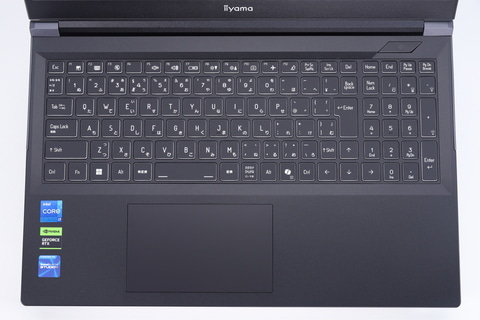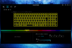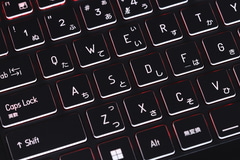 キーボードはテンキー付き日本語配列を採用。一部に狭小なキーが配置されているが、主要キーについては約18.5mmのキーピッチが確保されている。各キーのバックライトにはRGB LEDを採用しており、ユーティリティの「Control Center」を利用することで発光色を変更できる。