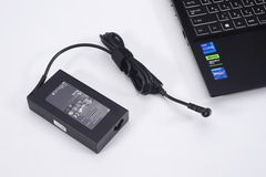 LEVEL-15FX166-i7-RKPX付属のACアダプタは180W対応品。突起部を除くアダプタのサイズは実測で約114×64.7×23.1mmで、出力容量のわりには薄くコンパクトで携帯性に優れている。