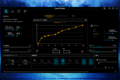 専用ユーティリティソフトのControl Centerには、キーボードのバックライト制御のほかに、バッテリ充電動作のカスタマイズやマクロ機能、システムのモニタリングおよび動作モード設定機能などが用意されている。