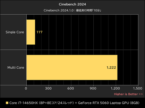 | CPU | Core i7-14650HX (8P+8Eコア/24スレッド) |