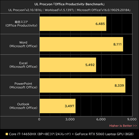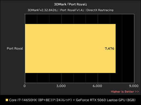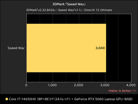 ノートPC向けGPUであるGeForce RTX 5060 Laptop GPUが高い性能を備えていることと、その性能を引き出せる能力がLEVEL-15FX166-i7-RKPXにあることが伺える結果だ。