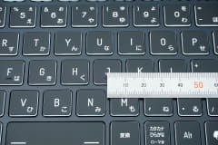 キーボードはオーソドックスな日本語配列で配列にクセもなく、矢印キーも大きいため初めてでもスムーズに使えるだろう。キーピッチは筆者の実測で約18mmとやや狭めだった。テンキーが備わっているので、オフィスワークもこなしやすい。左下の「Fn」キーとファンクションキーを組み合わせることで、タッチパッドの有効・無効の切り換え、音量や輝度の調整、画面キャプチャ、機内モードなどを実行できる。Copilotキーも用意。タッチパッドは実測で約122×84mmとかなり広かった
