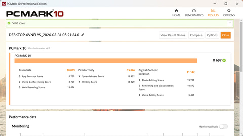 続いてベンチマークテストに移ろう。本機には複数の動作モードが用意されているが、ここでは「パフォーマンス」に設定した。