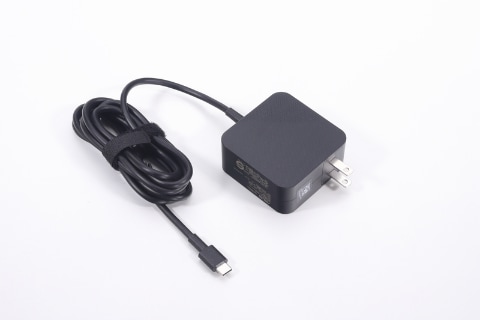 本体にはリチウムポリマーバッテリ(4セル/78Wh)を内蔵しており、これによってJEITA 3.0基準で動画再生時で約10.7時間、アイドル時に約15.0時間のバッテリ駆動を実現。付属のACアダプタは65W(20V/3.25A)対応のUSB PDアダプタで、本体のUSB4ポートに接続することで約2時間で充電を完了できる。