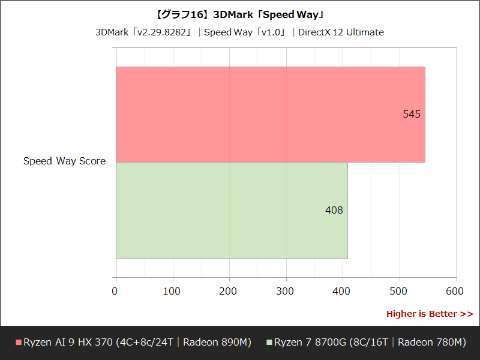 Ryzen AI 9 HX 370のスコアは「545」で、「408」のRyzen 7 8700Gを約34%上回った。