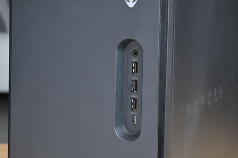「AlienFXライティング」によるRGBライティング機能はケース前面のロゴ(電源ボタン)と吸気ダクト、そして背面の排気ファンに設けられ、あくまでもアクセントとして派手過ぎないあしらいになっている。ほかはほぼブラック1色としたことで全体的に引き締まり、コンパクトさがより強調されている雰囲気だ。