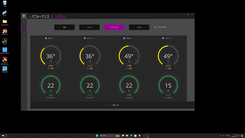 なお、Alienware Command Centerは、ベンチマークのところで示したように、アプリごとにパフォーマンスプロファイルを設定することもできる。[Ctrl]+[Shift]+[Y](任意のキーに変更可能)でオーバレイモードを呼び出せるので、ゲーム中でのパフォーマンスの設定が可能だ。ゲーム中のCPU/GPUの温度の記録も行なえるので、PCの状態をいつでもチェックできる。