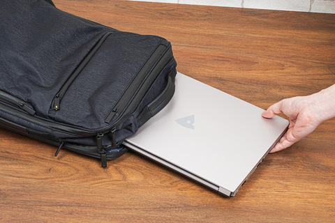 Type-CポートはUSB PDに対応しないが、付属の充電用ACアダプタ(45W)はコンパクトなため、持ち運ぶ場面でもかさばることはなさそうだ。厚み約21.4mm、重量約1.49kgということで、持ち運びに苦労するほどではない。バッテリ稼働時間は約9時間あるので、電源がないところでも活用できる。