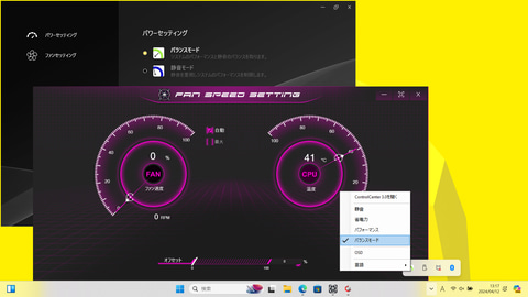 冷却ファンは最大負荷時だとそれなりの騒音になってしまうが、プリインストールされているユーティリティ「Control Center」を利用することで静音重視の設定にもできる。