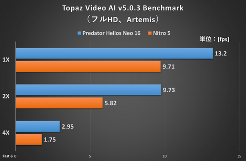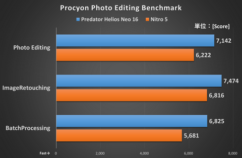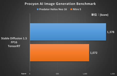 そのほかの処理はGPUがメインとなる。概ね同じ傾向で、Nitro 5よりも1.3倍ほどスコアが高い。AI処理でもGPUの世代差が出ているのが分かる。
