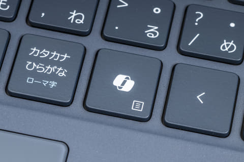 キーボードはアイソレーションタイプで、主要キーは19mmフルピッチを確保。Enterキー付近の一部キーはピッチが狭くなっているが、大きな違和感なくタッチタイプが可能だった。また、キーボードバックライトも内蔵しており、暗い場所でも快適にタイピングできる。キータッチの固さは標準的。またタイピング時の打鍵音も比較的静かだ。