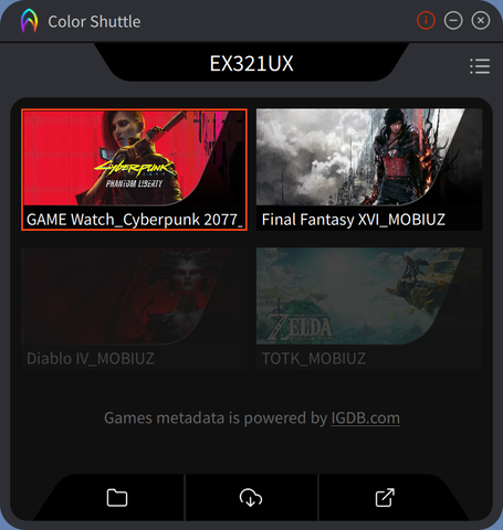 Color Shuttleとは、本機「EX321UX」を含むBenQ製ゲーミングモニターシリーズで幅広く利用できる機能で、有名なゲーム開発スタジオ、プロゲーマー、ゲーム実況配信者、ゲームメディアが作成した各ゲームタイトルごとの画質モードをダウンロードして利用できるフレームワークになる。