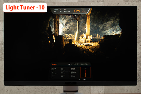 Light Tunerでは、標準表示状態から明暗を±10の範囲で微調整可能。表示映像に対して「明るすぎる」、「暗すぎる」と感じたときに試してみるといいだろう。こちらは暗部のみに影響かるBlack eQualizer機能とは違い、明部にも影響がおよぶ点に留意したい。