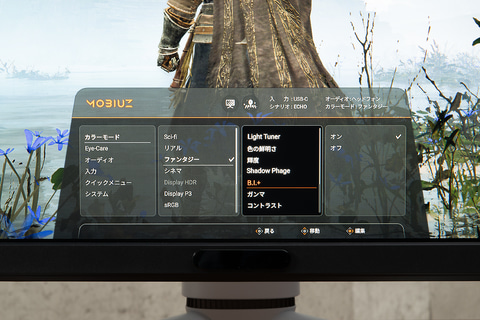 ユーザーが好みに合わせて調整できる機能としては「Light Tuner」と「Color Vibrance(OSDでの日本語名称は「色の鮮明さ」)」が搭載されている。この2つは、前出のAI系の自動調整機能とは異なり、ユーザーが自らが調節するものになる。