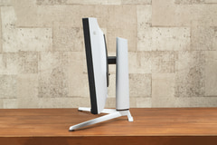 スタンド部は最大10cmの高さ調整に対応し、左右15度のスイベル、上15度~下5度のチルトに対応する。スタンド自体の最大幅598.7mm、最大奥行きは306mmなので、画面がはみ出てもいいのであれば、最小でこのサイズの台に本機を置くことが可能となっている。