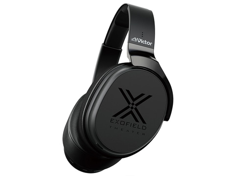 もう1つは、ヘッドフォンタイプのビクター「EXOFIELD THEATER XP-EXT1」だ。こちらもeARC対応製品。DolbyAtmosは7.1.4ch再生にも対応するので前後左右だけでなく、上下方向の音像定位表現にも対応する。実勢価格は9万円前後。