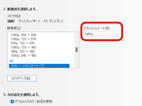 | リフレッシュレート | 144Hz |