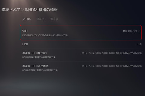 可変フレームレート表示に関しては、AMDのFreeSync Premium Proに対応する。FreeSyncはHDMI規格のVariable Refresh Rate(VRR)との互換性があるので、事実上のVRR対応が実現されていることになる。