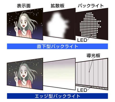 しかし、そんな液晶パネルにも弱点はあった。それは、画素を自ら発光させることができず、その表示にはバックライトと呼ばれる光源が必要なこと。なお、そのバックライト部材には、近年はLEDが用いられている。