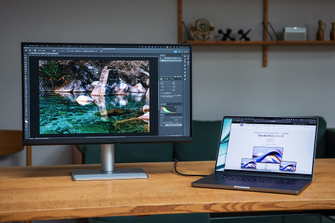 本製品はMac向けに開発されたモニターで、筐体のデザインだけでなく、画面の色味もMacに合わせて調整されている。そして、手作業で色合わせする面倒な作業をしなくても、色味が統一されたマルチモニター環境でクリエイティブな作業に集中できるのだ。