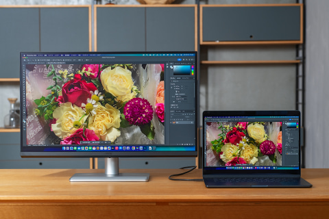実際、直接両方の画面を交互に見ても、色味の違いはほとんど分からない。キャリブレーションなどをせずにこれだけ色味が統一されていれば、マルチモニター環境での作業効率が高まることは間違いないはずだ。