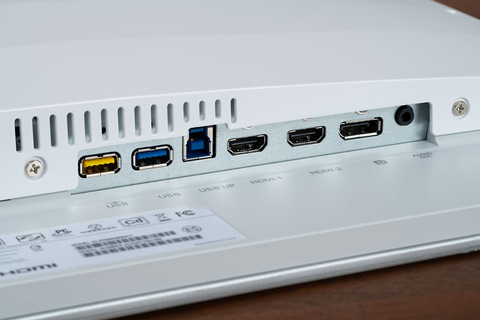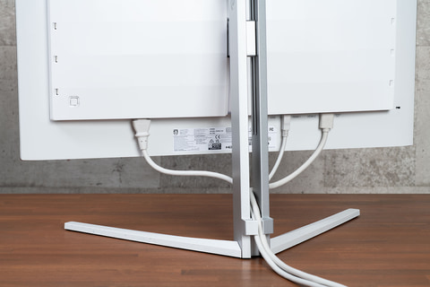 さらに付属する電源ケーブル、HDMIケーブル、DisplayPortケーブル、USBケーブルも同系色で統一されており、本体のデザインとマッチするようになっている。部屋に設置したときの見栄えまで気にする人にとってはうれしいポイントだろう。