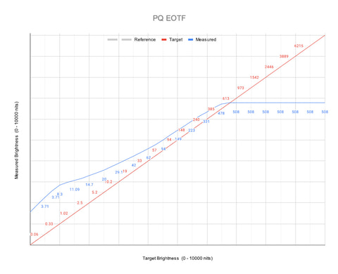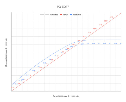参考までに27M2N8800/11のPQ EOTFの実測値を示そう。今回は、同じくPhilips製で液晶パネル(IPS)搭載の27型ゲーミングモニター「27M2N5501/11」でも計測を行なったので、そちらと比べながら見ていこう。