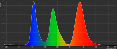両者ともに、青のスペクトラムピークは鋭く、分離感も美しいのは、どちらも光源としては青色であるためだ。白色LEDも実態光源としては青色LEDなのだ。では、緑と赤のピークの立ち上がりと分離において、QD-OLEDが圧倒的に優れているのはなぜか。