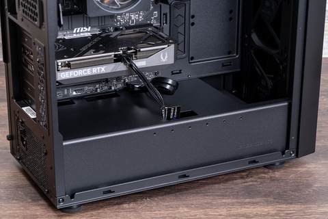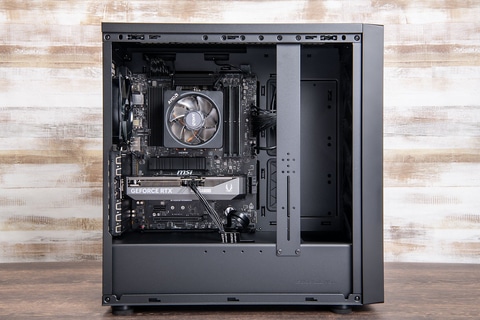 なお、効率的なエアフローを実現しているということは、PC内に熱がこもりにくいことを意味する。エンコード、レンダリングなどの高負荷な作業を除く日常的な用途では、冷却ファンの回転数を抑えられる。当然、システム全体の動作音が低くなるので、集中力を妨げられることなく、快適に作業できるというメリットもある。