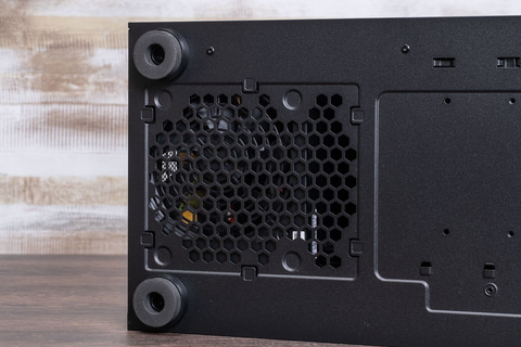 上面にはマグネット吸着式の防塵フィルタを装着。柔軟性のあるメッシュ素材なので、ペロリとめくれば手軽にクリーニング可能だ。下面の防塵フィルタも折り曲げられるので、わずかにたわませれば取りはずし可能。この2枚の防塵フィルタにより大きなチリやホコリの混入をガードできる。そのため、数カ月に1度ぐらいの頻度で左右パネルを取りはずし、内部にエアダスターを吹きかければ、購入当初の性能を長期間キープできるのだ。