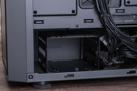 クリエイター向けデスクトップPCならではの仕様が、多くのストレージベイが用意されていること。2.5/3.5インチ兼用内蔵ベイ×2に加えて、2.5インチ内蔵ベイ×5を右側面内部に用意。合計で7基のSSD、HDDを内蔵できる。価格対容量比の高い2.5/3.5インチストレージを7基内蔵できるので、大容量データを効率的に保存できる。大容量の動画や画像データを扱うクリエイターにとって、大きな魅力と言えるだろう。