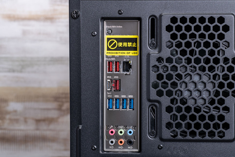 インターフェイスはマザーボード側にUSB 3.2 Gen 2 Type-C、USB 3.2 Gen 2 3基、USB 3.2 Gen 1 4 基、有線LAN(2.5Gigabit Ethernet)、アナログ7.1chサウンド(ライン出力、ライン入力、マイク入力、センター・サブ出力、リア出力、サイド出力)、本体上面にUSB Type-C、USB Type-A、3.5mmコンボジャック、ビデオカード側にHDMI、DisplayPort 3基を装備する。本体サイズは230×465×465mm、重量は実測9.4kgだ。