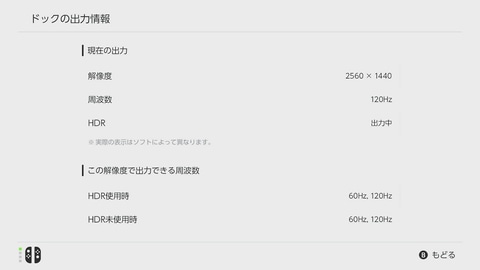 また、1440p、HDR、120fps表示には14.49Gbpsの帯域が必要となるが、HDMI 2.0では14.4Gbpsなのでギリギリ足りない計算になる。だが、どうやらSwitch 2は、非圧縮のYCbCr 4:4:4ではなくYCbCr 4:2:0で出力しているようだ。