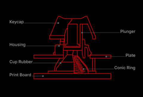 キーキャップには高強度のPBT樹脂を用い、キートップのプリントは昇華印刷によるもの。繊細なシボ加工も施すことで「 プリントした文字が消えにくく、摩耗によるテカりを抑えている 」ところもR3から受け継いでいる。耐久性を高めて製品寿命を長くすればするほど買い換え需要は減ってしまうことになるが、それでもあえて部品1つ1つに高耐久なものを選び抜いて使用していると明かす。