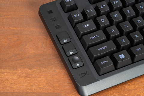 1月22日に発表された新製品「HyperX Eve 1800 Keyboards」は、メンブレンスイッチのエントリー向けフルサイズキーボード。ライティング制御可能なLEDバックライトを内蔵する。左側には音量調整とミュートボタンがあり、ボイスチャットしながらのプレイがしやすいなど機能的だ。打鍵音が静かなので、静音性重視の人にも向く。