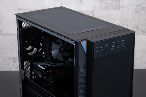 冷却面では、前面パネルの80%をメッシュ構造とし、効率的なエアフローを確保することで、高負荷時でもCPUを安定した温度に保てる点が特徴。ファンは前面に2つ、背面に1つのトリプルファン構成とし、そこにタワー型の空冷CPUクーラーを加えている。
