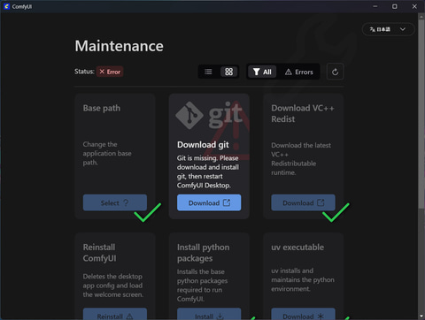 もう1つ試してみたのが画像生成AIだ。以前は環境構築に手間がかかり、設定難易度も高かったローカルAIでの画像生成だが、現在では「ComfyUI」を利用すれば最新のAIモデルを活用した画像生成が簡単に行なえる。セットアップの流れを下記でざっくり解説しているが、画面の指示に従って操作していけば迷うところは少ない。