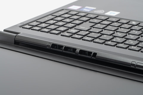 また、底面にあるスタンドで本体奥側をリフトアップできるユニークなギミックも備える。これによりキータイプがしやすく、画面の視認性を高められ、冷却効果をアップさせられるなど、ほかにはない使い勝手のよさも実現している。