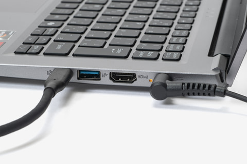 充電はUSB Type-Cでも、付属の専用ACアダプタによるDC入力でも可能。ACアダプタなら、充電しながらType-C周辺機器を使えるのでうれしいところ。機動力を高く保ちつつ、デスクワークでの実用性能にもこだわりたいユーザーに特におすすめだ。