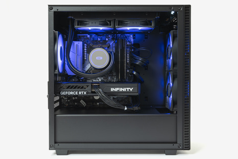 基本構成は17万円台から(※3月下旬の記事公開時)とリーズナブルながら、ディスクリートGPUまで備える。隅々までカスタマイズ可能となっており、今回の試用機はRyzen 7 5700X、GeForce RTX 5060、メモリ16GB、ストレージ500GBという構成に、簡易水冷システムも搭載されている。冷却性能や静音性アップを狙った自分好みの1台に仕上げられるだろう。しかも、4月1日まではGPUがGeForce RTX 5060 Tiに無料アップグレードされるキャンペーンを実施中だ。