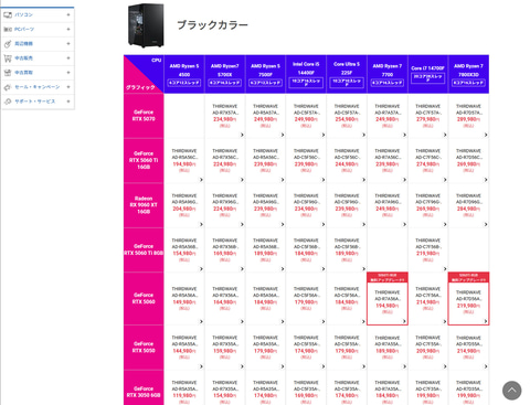 | THIRDWAVE AD-R7X56A-01B 輝く水冷モデル | THIRDWAVE F-14BR5A | THIRDWAVE DX-15RP5A | THIRDWAVE DX-16PN7A | |