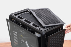 MasterFrame 600では、Freeform 2.0というモジュラー設計コンセプトを採用しており、マザーボード、電源ユニット、簡易水冷クーラー、冷却ファンなど各パーツを柔軟に配置できるのが大きな特徴になっている。ゲーマーだけではなく、クリエイターの利用も意識して、しっかりした風量を確保しながら、非常に静かなファンを採用しているとのこと。