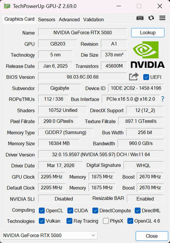 | グラフィックス | GeForce RTX 5080 16GB |