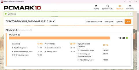 Cinebench 2026のMulti Threads、Single ThreadのスコアともRyzen 7 9850X3D+DDR5-5600として順当といえる結果だ。PCMark 10のスコアも総じて高く、GPU性能が高いこともあり、特に動画、画像処理のDigital Content Creationのスコアが特に優秀でクリエイティブワークも十分こなせるパワーがあるといってよい。