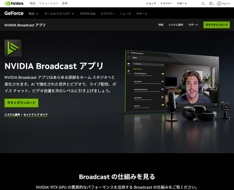 改めて、NVIDIA Broadcastとはどういうものなのか簡単に説明しよう。GPUドライバとは別で配布されているため、もしかするとGeForce RTXユーザーでもご存じない方がいるかもしれない。が、もしまだ利用していないならぜひ一度インストールしておきたいツールだ。