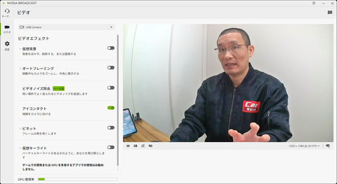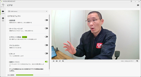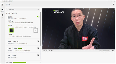 しかしNVIDIA Broadcastは、GeForce RTXのGPUパワーを生かしてそれらの映像・音声処理を高速に、かつ高精度にこなすことができる。CPUが担っていた部分を肩代わりすることになるので、PCの全体的なレスポンスを軽快に保てるのもメリットだ。